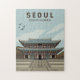 Seoul Retro Vektorgrafik Design. Seoul, die Hauptstadt Südkoreas, ist eine riesige Metropole, in der moderne Wolkenkratzer, High-Tech-U-Bahnen und Pop-Kultur buddhistische Tempel, Paläste und Straßenmärkte treffen.