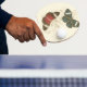 Sepia Blätter mit bunten Schmetterlingen Tischtennis Schläger