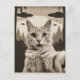 Sepia Funny Kitty und UFOs Postkarte