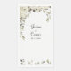 Eine subtile sepia-farbene natürliche ecru farbene Hochzeitsgast-Handtuch/Dinner-Servietten mit einer delikat bemalten Wasserfarbe von weißen Tornfloralen und eucalyptus grünen Weinreben mit einem modernen handgeschriebenen Skript.