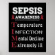 Dieses Design dient der Sensibilisierung für Sepsis. Der fette T.I.M.E.-Leitfaden dient als mächtige Erinnerung der Schlüsselsymptome: Temperatur, Infektion, psychischer Niedergang und Extrem Ill. Ideal für Ärzte, Krankenschwestern und medizinisches Fachpersonal. Zeigen Sie Ihre Unterstützung und helfen Sie, das Bewusstsein für diesen lebensbedrohlichen Zustand zu verbreiten.