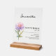 Feiern Sie Geburtstage im September mit diesem eleganten Aster Acrylic Sign! Mit der Blume der Geburt des Monats und dem anpassbaren Text ist es ein zeitloser Sake oder Dekorstück, das perfekt ist, um einen besonderen Tag mit Stil und Anmut zu ehren. Karo für andere Geburtsmonate.