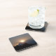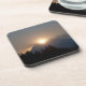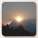 Ein Foto der Morgensonne, das sich über dem Wappen des Berggipfels des Berges Rainier erhebt.