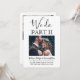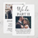 Laden Sie Familie und Freunde ein, um zu sehen, wie Sie "I do" wieder mit einer eleganten, modernen 2-Foto-Nachfolger-Einladung zum Hochzeitsfest sagen. Alle Formulierungen sind einfach zu personalisieren, einschließlich Zitat, das lautet "Wir machen Teil II". Passen Sie es für jede Art von Ehefeiern an, wie zum Beispiel eine Verlobungsfeier, Empfang zum 1. Jubiläum, Party nach der Ehe, Cocktail-Stunden oder Abendessen Party. Personalisieren Sie Ihre Wunschdetails, einschließlich Ehedatum, uAwg, Kleidungscode, Website usw. (IMAGE PLACEMENT TIP: Ein einfacher Weg, ein Foto genau so zu zentrieren, wie Sie gewollt haben, ist es, es zu schneiden, bevor Sie es auf die Zazzle-Website hochladen.) Das moderne minimalistische Schwarz-Weiß-Design umfasst zwei Bilder des frisch verheirateten Paares, eine trendige handgeschriebene Schriftzeichen-Kalligraphie und eine schicke Schreibmaschinentypografie. Egal, ob Sie aufgrund der Kokospanidemie entstanden sind oder auf eine kleinere, intimere Minimonie oder Mikrohochzeit reduziert werden, das Glück nach dem Party kann immer noch beginnen. Herzlichen Glückwunsch an die Braut und Bräutigam!