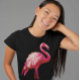 Sequin Printed Tropical Flamingo Pink Bird Black T-Shirt