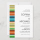 Ein Set serape sommerlichen Farbmuster Hochzeit lädt in einem offenen und minimalen Stil ein. Sie zeichnen sich durch ein lebendiges Farbstreifenmuster auf der Seite aus, kombiniert mit sauberen Textelementen auf der anderen Seite.