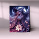 Unter der stillen Uhr eines kolossalen Mondes taucht ein etherischer Engel, der mit eulenähnlichen Federn verziert ist, anmutig aus den Schatten auf. Ihr langes, weißes Haar kaskadiert um ein ruhiges Gesicht und durchdringende rote Augen blicken mit uralter Weisheit. Mit riesigen, gefiederten Flügeln, ungezaubert und weiße Lilien, die sanft um sie herum leuchten, verkörpert sie eine zarte, aber mächtige Präsenz, eine Hüterin der mondbeleuchteten Nacht