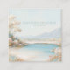 Wrap your brand in tranquil elegance and serene beauty with this Serene Aqua Lakeside Gold Frame Romantic Floral Business Card. The design captures a breathtaking moment over a calm body of water, with the sky and distant, hazy mountains painted in soft pale blue hues. The water features a luminous aqua tone, reflecting the tranquil scene. The foreground is beautifully framed by river rocks, soft blush pink and white wildflowers, and a striking ethereal white tree, adding a touch of romance. Your essential information will be beautifully set against the open sky within the crisp, thin metallic gold line square frame, which provides a sharp, modern geometric anchor. This high-impact card is perfect for spa and wellness centers, resort managers, fine artists, event planners, or any professional seeking to convey tranquility, pristine natural beauty, and sophisticated peace. Use these impressive cards to solidify a memorable first impression with potential clients, to offer a loyalty card or frequent buyer incentive, or to serve as a stunning miniature art piece to accompany product packaging. This design is also a beautiful template for creating a high-end invitation, a unique thank you note, a VIP event pass, or a stunning gift certificate.