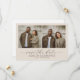 This wedding save the date design features a split layout with two rectangular photo placeholders, each showing individuals against a textured concrete wall. The color palette includes muted earth tones like beige and soft gray, creating a warm and inviting atmosphere. Elegant script and serif fonts highlight the "save the date" message, adding sophistication to the minimalist style. The overall mood is serene and romantic, perfect for capturing genuine moments in a modern yet timeless way.