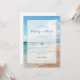 This wedding invitation features a serene beach scene with gentle waves and fluffy clouds, creating a tranquil and inviting atmosphere. The minimalist design uses soft blues, whites, and warm beiges to evoke a dreamy, ethereal quality. Elegant typography highlights the couple's names and event details, ensuring clarity and focus on the celebration. Perfect for couples seeking a calm yet joyful vibe, this invitation is ideal for a seaside or summer-themed wedding.