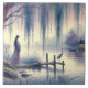 Eine traumhafte Szene entfaltet sich in dieser ruhigen Landschaftskunst, in der eine mystische Frau in fließenden Roben unter einer weinenden Weide steht und bei Morgengrauen über einen ruhigen See blickt. Dieses asiatische Fantasy-Kunstwerk ist reich an ruhiger Atmosphäre und faszinierendem Geschichtenerzählen und zeichne die Zuschauer in eine weiche, ätherische Welt. Die Wildbaumillustrierung kaskadiert sich in den Rahmen, ihre zarten Blätter verstärken die friedliche Naturszene. Ein einziger Held sitzt leise auf einem Holzsteg und spiegelt die Stille des Wassers wider. Die sanften Pastelltöne in Lavendeltönen, die blauen und blassgoldenen Farbtöne rufen ein Gefühl poetischer Stille hervor, ideal für jeden, der zu spiritueller Einsamkeit oder Fantasiefriedlichkeit gezeichnet hat. Ein Pavillon mit Laternenbeleuchtung und ein treibendes Boot im Hintergrund fügen dieser ruhigen Seeszene subtile Erzählschichten hinzu. Perfekt als beruhigendes visuelle für Meditationsräume oder träumlich inspirierte Dekoration. AI generierte Kunstwerke.