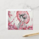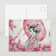 Serene Geisha Katze mit Red Parasol Cherry Blossom Postkarte