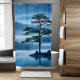 Entfliehen Sie einer ruhigen Bergwelt, wo Kiefernbäume in der coolen, belebenden Meeresbrise blühen. Dieser erfrischende Duschvorhang erfasst das Wesen einer friedlichen Küstengebirgslandschaft und bietet Ihnen ein ruhiges und belebendes visuelle für Ihr Bad. Erschaffen Sie Ihre eigene Oase der Ruhe und der natürlichen Schönheit.