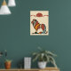 Bring a touch of modern serenity to your walls with this "Kind Lion" abstract art poster from the "Serene Savanna" collection by Cor de Flor Design. This vertical print features a sophisticated composition of a stylized lion and minimalist sun, masterfully rendered in a curated earthy palette—terracotta, forest green, and ochre.