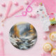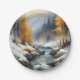 Ein atemberaubendes, ruhiges, im Winter schönes Aquarellbild mit einem kristallklaren Fluss, der sich durch schneebedecktes Gelände zieht, umgeben von Bäumen. Ideal für Kunstliebhaber.