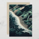 Serene Shores: This stunning top-down illustration captures the harmony of land and sea, featuring waves gently breaking on sandy beaches with lush green mountains in the background. Rendered in soothing shades of dark blue-green, the artwork evokes a sense of tranquility and balance. The intricate detail of the ocean’s patterns meeting the shore, paired with the trees lining the water’s edge, enhances the peaceful atmosphere. Created in a woodcut print style with simple lines and a flat design, the piece is reminiscent of hand-drawn animation, offering a timeless, serene depiction of nature’s beauty.