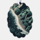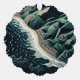 Serene Shores: This stunning top-down illustration captures the harmony of land and sea, featuring waves gently breaking on sandy beaches with lush green mountains in the background. Rendered in soothing shades of dark blue-green, the artwork evokes a sense of tranquility and balance. The intricate detail of the ocean’s patterns meeting the shore, paired with the trees lining the water’s edge, enhances the peaceful atmosphere. Created in a woodcut print style with simple lines and a flat design, the piece is reminiscent of hand-drawn animation, offering a timeless, serene depiction of nature’s beauty.