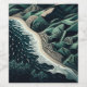 Serene Shores: This stunning top-down illustration captures the harmony of land and sea, featuring waves gently breaking on sandy beaches with lush green mountains in the background. Rendered in soothing shades of dark blue-green, the artwork evokes a sense of tranquility and balance. The intricate detail of the ocean’s patterns meeting the shore, paired with the trees lining the water’s edge, enhances the peaceful atmosphere. Created in a woodcut print style with simple lines and a flat design, the piece is reminiscent of hand-drawn animation, offering a timeless, serene depiction of nature’s beauty.