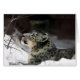 Ein schöner Schneeleopard, der auf diesen wunderschönen, weißen Mitteilungskarten im Schnee ausblickt. Klicken Sie auf Anpassen, um Text hinzuzufügen, wenn Sie möchten.