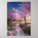 Eine malerische Szene entfaltet sich, wenn sich ein friedlicher Bach durch eine ruhige Landschaft schlängelt, die von wunderschönen Sakurabäumen geschmückt ist. Die Äste dieser majestätischen Bäume reichen aus und bilden eine zarte Baumkrone über dem Bach, wodurch ein skurriler Flur mit rosa Blüten entsteht. Das sanfte Rauschen des fließenden Wassers harmoniert mit dem sanften Rauschen der Blätter und schafft so eine beruhigende Symphonie der Naturmelodien. Der Anblick der Sakurabäume in voller Blüte ist ein Fest für die Augen, eine Feier der Naturkunst und die kurzlebige Schönheit der Kirschblüten.