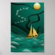 "Serene Voyage" verkörpert eine Szene des Friedens und der Entdeckung, mit einem goldenen Segelboot, das sich anmutig durch ein Meer von strukturierten grünen Wellen unter einem sanften Sonnenuntergang bewegt. Die künstlerische Darstellung des Ozeans und des Himmels, die in sanften grünen Tönen dargestellt wird, fördert eine ruhige und reflektierende Atmosphäre. In der Zwischenzeit stellen die Vögel, die in der oberen links Ecke steil in die Höhe steigen, Freiheit und eine Bindung zur natürlichen Welt dar. Dieses Werk verbindet auf harmonische Weise minimalistische Ästhetik mit abstrakten Elementen, um Gefühle der Gelassenheit, Erforschung und Selbstreflexion inspirieren