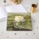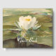 Friedliches, ruhiges Gefühl aus der Wasserlilienmalerei mit Grüntönen und Blues und einer blühenden Weißwasserlilie. Bearbeiten Sie den Text bei Bedarf.