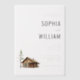 Diese elegante Hochzeitseinladung verfügt über ein minimalistisches Layout mit viel negativem Raum, wodurch sie sauber und anspruchsvoll wirkt. Das Design enthält eine Aquarell-Illustration einer rustikalen Blockhütte neben einer immergrünen Tanne, die der neutralen Farbpalette aus Weiß-, Grau- und Erdtönen eine natürliche Note verleiht. Serifen-Schriftarten in verschiedenen Gewichten sorgen für ein klassisches Gefühl, betonen die Namen und gewährleisten gleichzeitig die Lesbarkeit aller Details. Perfekt für Paare, die eine ruhige und einladende Atmosphäre suchen, ist diese Vorlage anpassbar, sodass Sie sie für Ihren besonderen Tag personalisieren können.