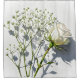 Transform your bathroom with this elegant drawing of a creamy white rose and delicate baby's breath on a textured white background. Ideal for nature enthusiasts, its minimalist beauty and soft shadows create a serene, sophisticated ambiance.