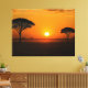 Silhouetten ikonischer Akazienbäume heben sich gegen den feurigen Himmel ab und verleihen dem Bild Dramatik und Ruhe.