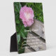 Eine 8 x 10 Zoll große, dekorative Plakette mit Scharnier, in der die inspirierenden Worte des Serenity Prayer überragt sind, das Foto eines hübschen, rosa Peony, das über einer Parkbank aus Holz hängt. Macht ein nachdenkliches Geschenk für Familienmitglieder und Freunde!