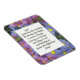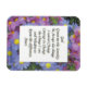 Das inspirierende, ruhige Gebet, umgeben von violetten Blumen auf einem Kühlschrankmagnet, um uns daran zu erinnern, ruhig zu sein.