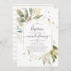 Aquarellblütengrün Taufe in Pastelltönen mit goldenem geometrischem Rahmen und eleganter handschriftlicher Typografie, die auf Ihre Veranstaltungsspezifikationen zugeschnitten ist.