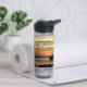 Bleibe mit dieser klaren, plastischen Wasserflasche, die das Foto eines dramatischen, orangefarbenen Sonnenuntergangs mit den inspirierenden Worten des Serenity-Gebet zeigt. Wählen Sie die Größe und Farbe der Wasserflasche aus.