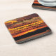Schützen Sie Ihre Tischdecke vor Wasserzeichen und Flecken vor Getränken mit diesem Set von 6, Kunststoff-Getränke-Cochers mit Korkböden, die das Landschaftsbild eines dramatischen, orangefarbenen Sonnenuntergangs über Wasser mit den inspirierenden Worten des Serenity-Gebet.