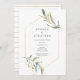 Wasserfarbenes Blumengrün Einladung zur Hochzeit in Pastelltönen mit goldenem geometrischem Rahmen, angepasst an Ihre Veranstaltungsspezifikationen.