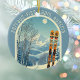 Ornament from a wonderful skiing holiday in the beautiful mountains of Serfaus‑Fiss‑Ladis, Austria. This Ornament features an arch with a stunning blue-grey mountain landscape and retro ski boards in an orange tribal pattern in the foreground. The rest is in a lovely light blue tone with the location lettering in a modern font. The design is a lovely combination of retro and modern, and I hope you enjoy it!