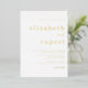 Laden Sie Familie und Freunde zu Ihrer Hochzeit mit dieser maßgeschneiderten Legalt-Folie gepresste Hochzeitseinladung. Es enthält einfache Serifentypografie und kursive Skripte. Diese minimalistische Einladung ist perfekt für jede Hochzeitszeit oder jedes Thema. Personalisieren Sie diese moderne Hochzeitseinladung durch Hinzufügen Ihrer Hochzeitsdetails. Diese Goldfolie-Hochzeitseinladung ist auch in anderen Folienschliffen erhältlich.