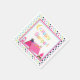 Leider ist beim Bestellvorgang nicht die Größe angegeben, zumindest habe ich es nicht gesehen. Der Name "Duschen"-Servietten ist etwas seltsam :-) Aber man kann aus verschiedenen Designs auswählen und es sieht ganz nett aus. Ich würde mir aber noch viel mehr verschiedene Farben und Muster wünschen! Insgesamt eine nette Idee für ein personalisiertes Accessoire zu allen möglichen Feiern. Der Druck ist OK, er ist nur ganz leicht unscharf.