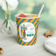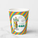 Get your party drinks ready with this vibrant Sesame Street paper cup! Perfect for a first birthday, this cup features Big Bird, Elmo, Ernie, and Oscar the Grouch beneath the iconic 123 Sesame Street sign. The main graphic is set inside a central oval and is surrounded by a backdrop of bold, colorful diagonal stripes—red, yellow, blue, and green—that wrap around the entire cup, making it a truly festive addition to your celebration. It clearly announces the special age: "IS TURNING ONE." These sturdy, themed cups are essential for serving drinks while keeping your Sesame Street party theme consistent and fun!