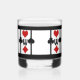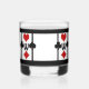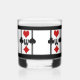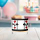 Diese personalisierten Whiskey-Brillen sind ideal für Poker Night oder Ihr nächstes Card-Party. Sie sind im Art Deco-Stil inspiriert und mit einem Kartenspiel-Thema versehen, das aus 4 Sets leuchtend roter und schwarzer Anzug-Symbole (Diamant, Klee, Herz & Spade) besteht, die für Ihr Monogramm in der Mitte ein spezielles Textfeld bilden, Set auf schneeweißem Hintergrund mit schwarzen und schwarzen und dünnen Streifen.
