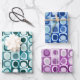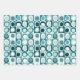 Verpackungspapier in Wiederholung von abstrakten Quadraten und Flecken in kräftigen Farben aquamarin blau magenta