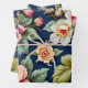 Romántico papel de regalo con flores y fondo clásico color azul.