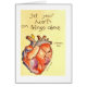 Wasserfarbe eines menschlichen Herzens mit einem kleinen gelben Vogel, der auf einer der Hauptvenen von oben ruht. Bunt.