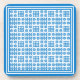 Ein Set von sechs sehr schicken, quadratisch mit Kork unterlegten Untersetzer, mit einem Muster traditioneller walisischer Tapestry-Motive in Bright Blue auf weißem Hintergrund.