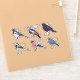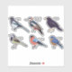 Schönes Set bestehend aus Abbildungen verschiedener Vogelarten mit ihren jeweiligen Namen. Es umfasst einen Magie, einen Specker, einen Blackbird, einen Waggtail, einen Stierstier und einen Blauvogel.