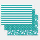 Drei Muster in aquamarin und weiß: Grundstreifen, Polka-Punkte und zufällige Punkte.
