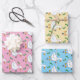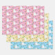 Ein niedliches Set aus 3 flachen Packpapier-Blättern mit einem bezaubernden Gänsemuster . Einer ist pink, einer ist gelb und einer blau. Perfekt für Babyduschen oder Geburtstage . © ArianeC Illustrations-Alle Rechte vorbehalten
