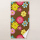 Genießen Sie dieses Retro-Vintage Handtuch-Set. Der braune Hintergrund mit gelben, blauen Blume, rosafarbenen Nelken und blauen Blumen wird bestimmt diejenigen ansprechen, die die Stile der 70er Jahre Liebe haben.