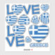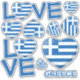 Wort "LIEBE" mit einer herzförmigen Flagge von Griechenland. Set für Konturaufkleber.
