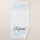 Weiche Pastellbläschen in Blues, Pink und Lila auf einem Handtuch-Set. Text aktualisieren kann personalisiert werden
